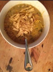 - Ladle soup in equal parts into 8 heated soup bowls. Garnish each with fried tortilla strips, shredded cheese and pico de gallo.